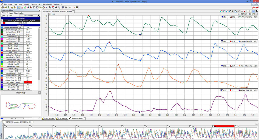 for chassis tuning, tire exploitation, and driver behaviour.